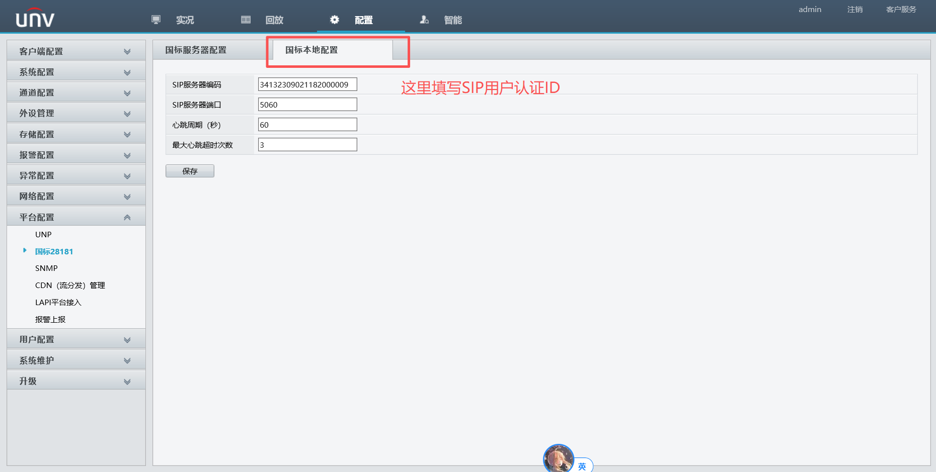 这个需要填写到国标本地配置(在国标服务器配置旁边)。