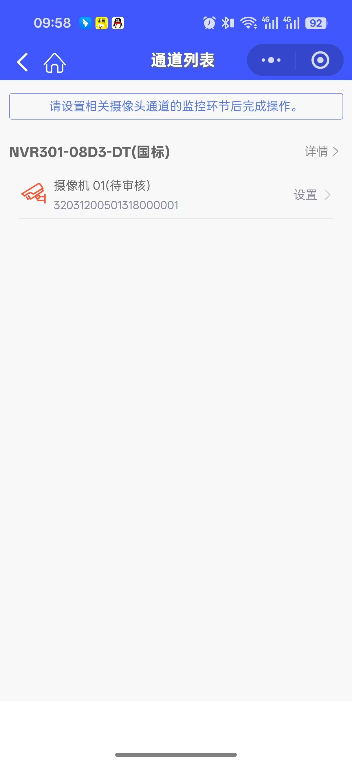 在框内输入32031200501318000001,返回到小程序中显示通道列表就完成了。根据实际要求设置通道监控环节(小程序里操作)。